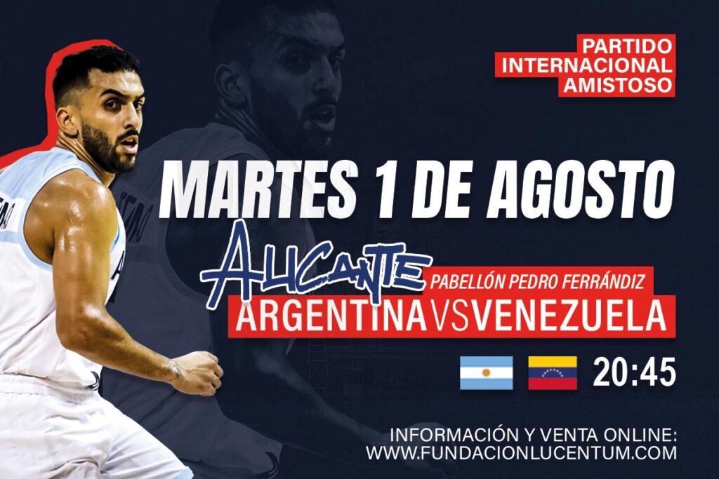 Las selecciones de Argentina y Venezuela disputarán un partido amistoso de preparación en el pabellón Pedro Ferrándiz de Alicante el próximo martes 1 de agosto, a las 20,45 horas.