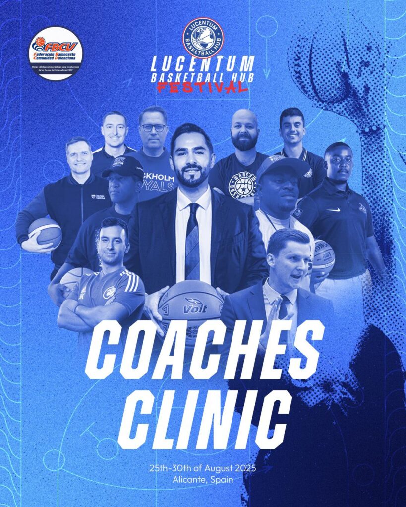 Dentro del Lucentum HUB Festival (25–30 de agosto de 2025), entrenadores y profesionales del baloncesto tendrán la oportunidad única de participar en un Coaches Clinic de una semana con ponentes de primer nivel procedentes de Europa, Estados Unidos y México, representando a organizaciones de referencia como Cedevita Olimpija Ljubljana, Minnesota Timberwolves (NBA), Žalgiris Kaunas, Venados de Mazatlán, Selecciones Nacionales de Eslovenia y República Checa, y Newcastle Eagles.